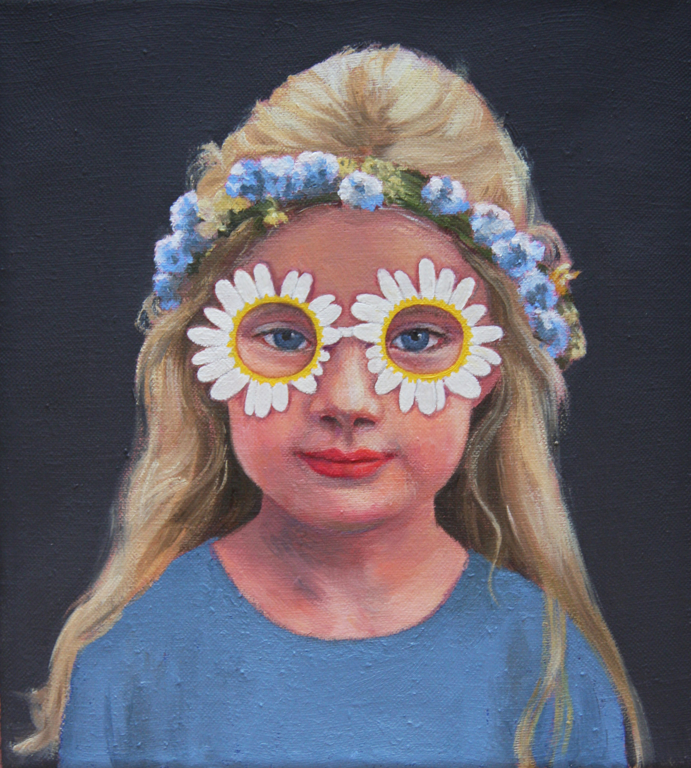 "Blumenmädchen", 2023, 24 x 27 cm, Öl auf Nessel