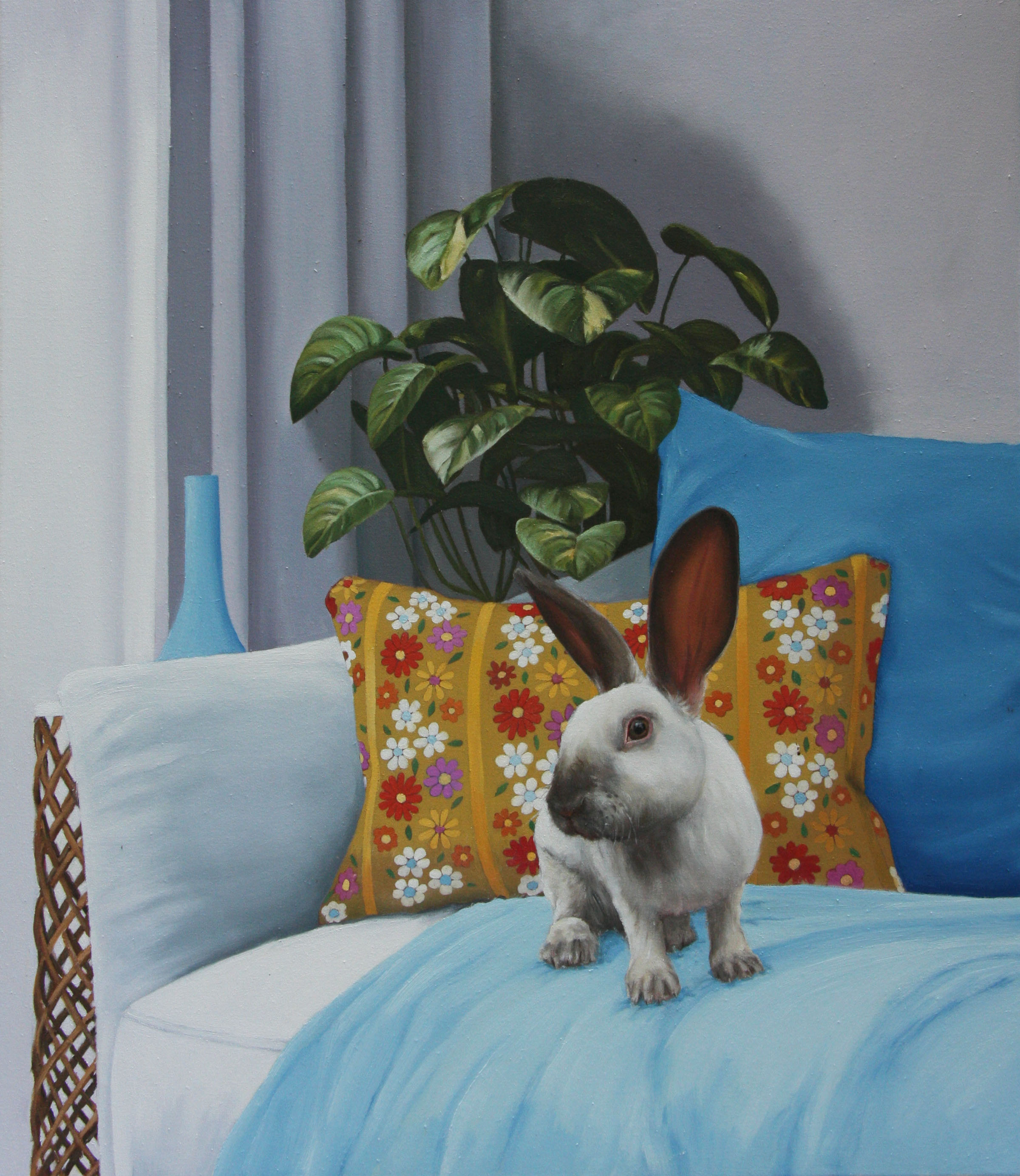 "Hase", 2023, 60 x 70 cm, Öl auf Nessel