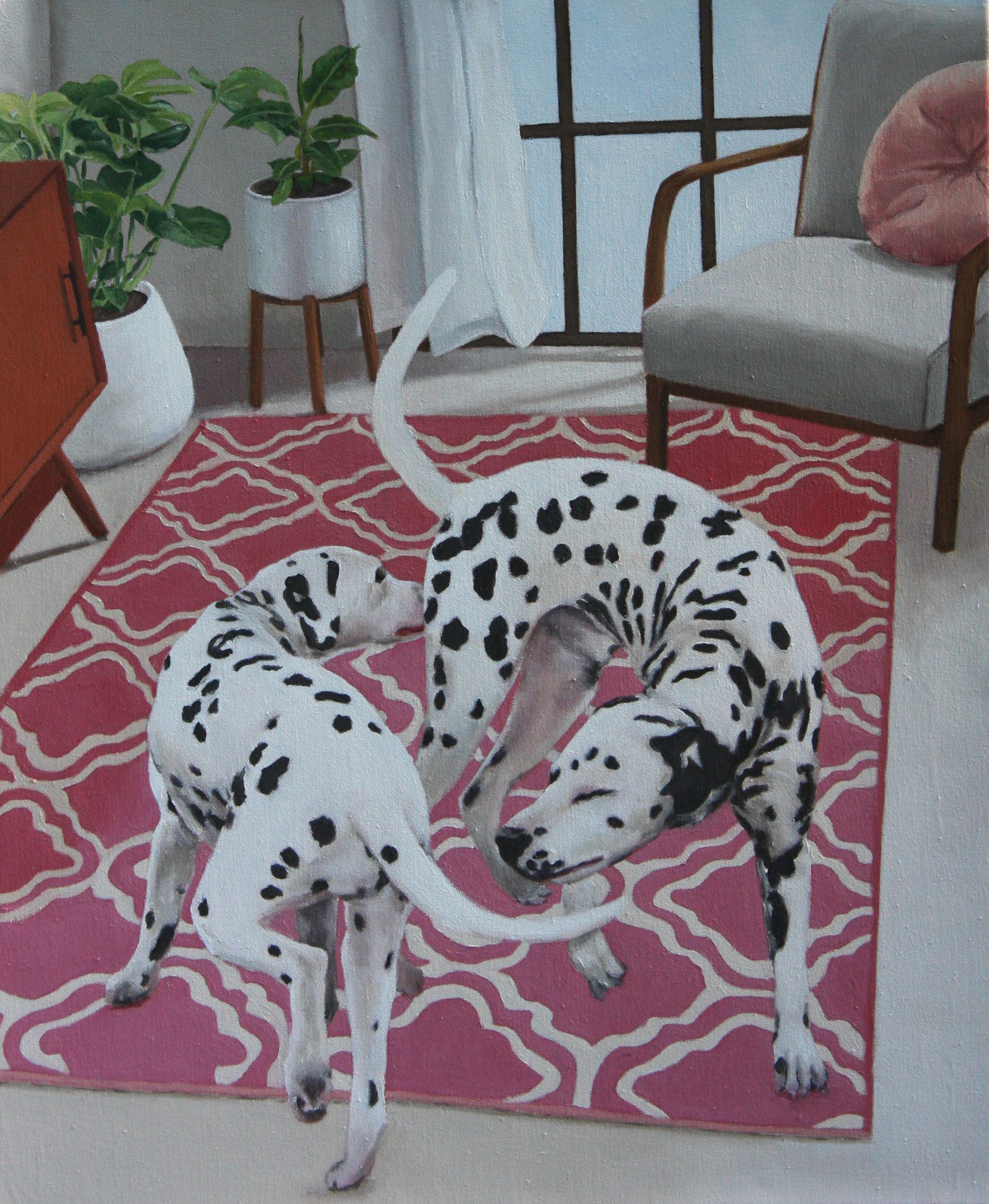 "Tanz der Dalmatiner", 2023, 50 x 60 cm, Öl auf Nessel