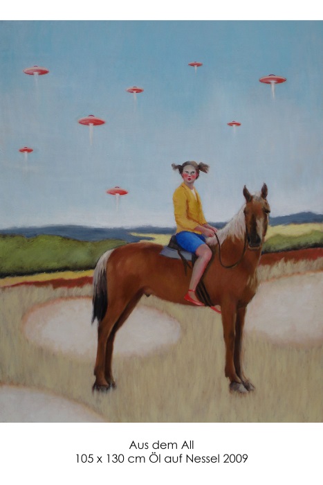 Es gibt in ihren Bildern atemberaubende Einblicke: Mädchen und Goldfisch - eine stille, zeitverlorene Welt für sich. Die Kartenlegerin, Schnittmenge für das Persönliche im Erwarteten. Drei Jungs geknüpft an die Frage: wo endet kindliche Freiheit und wo beginnt Normierung? Die Jungfrau Ironisierung des Marlboro-Cowboys, ein Bild ohne Scham in der Durchdringung von Gefühl und Politik.